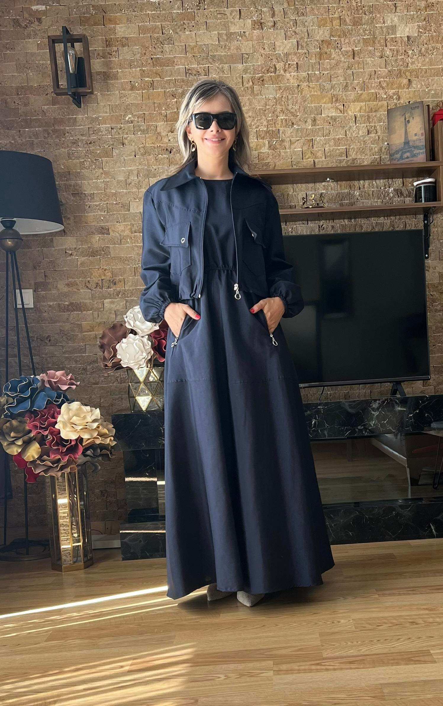 Kadın Torino Treç Kumaş Jile Elbise & Ceket İkili Takım, şıklığı ve zarafeti bir araya getiren özel tasarımıyla hem ofis stilinizde hem de günlük kombinlerinizde vazgeçilmez parçanız olacak.